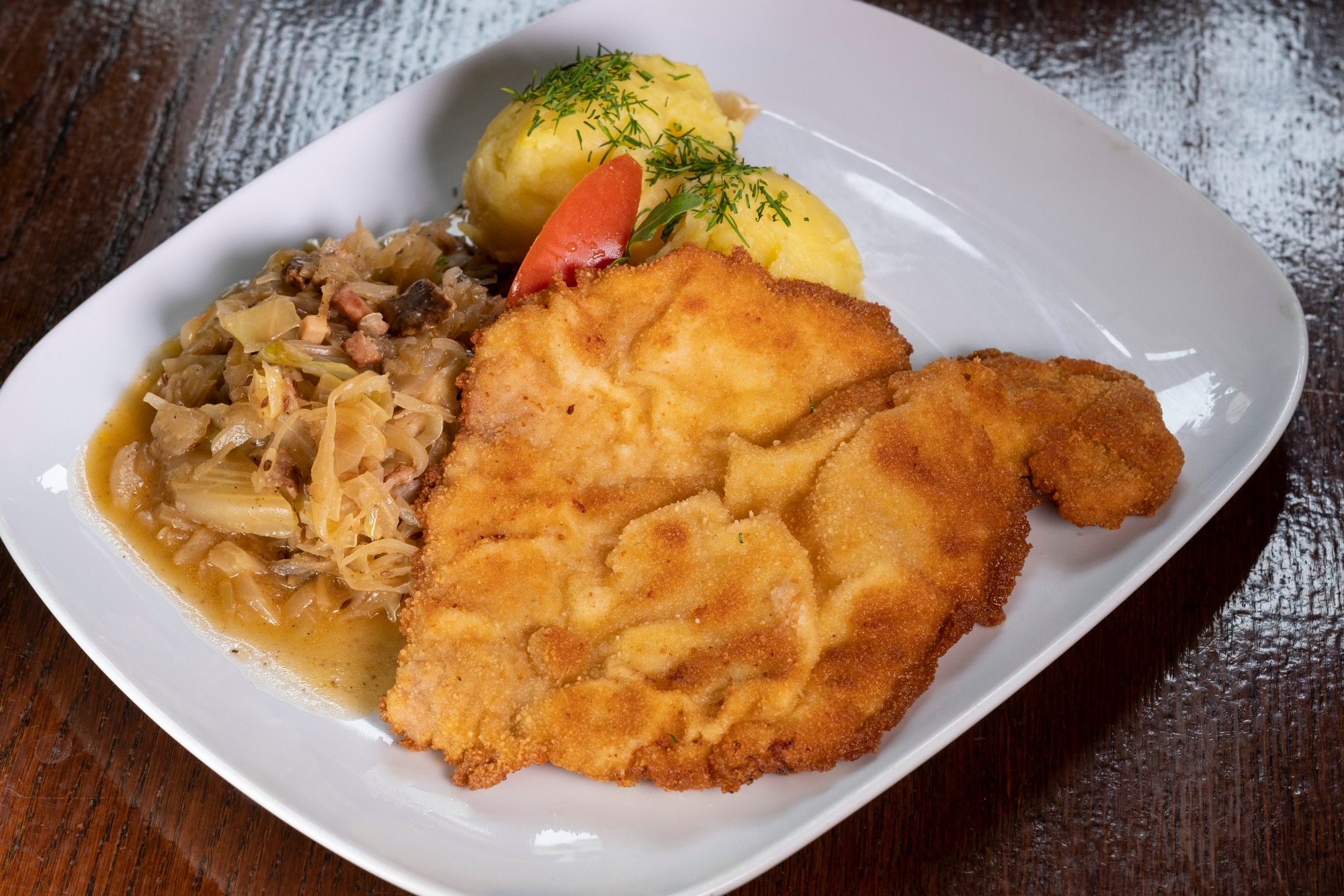 Krokiet z kapustą i barszcz solo.